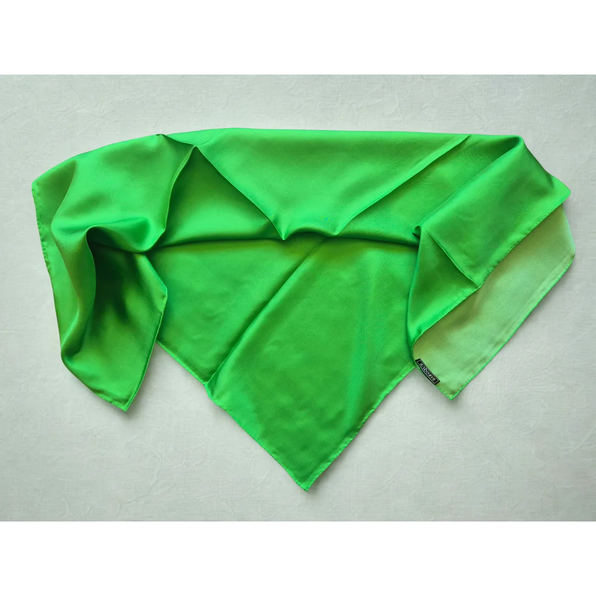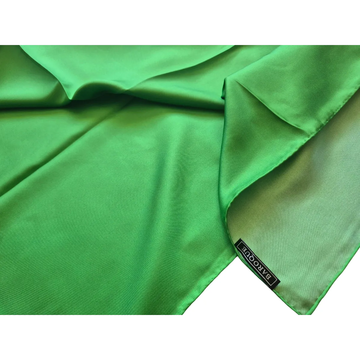 A beautitul classic bright emerald green plain. Just want your collection needs.. and it sits and ties just as beautifully as any baroque pattened scarf does!!