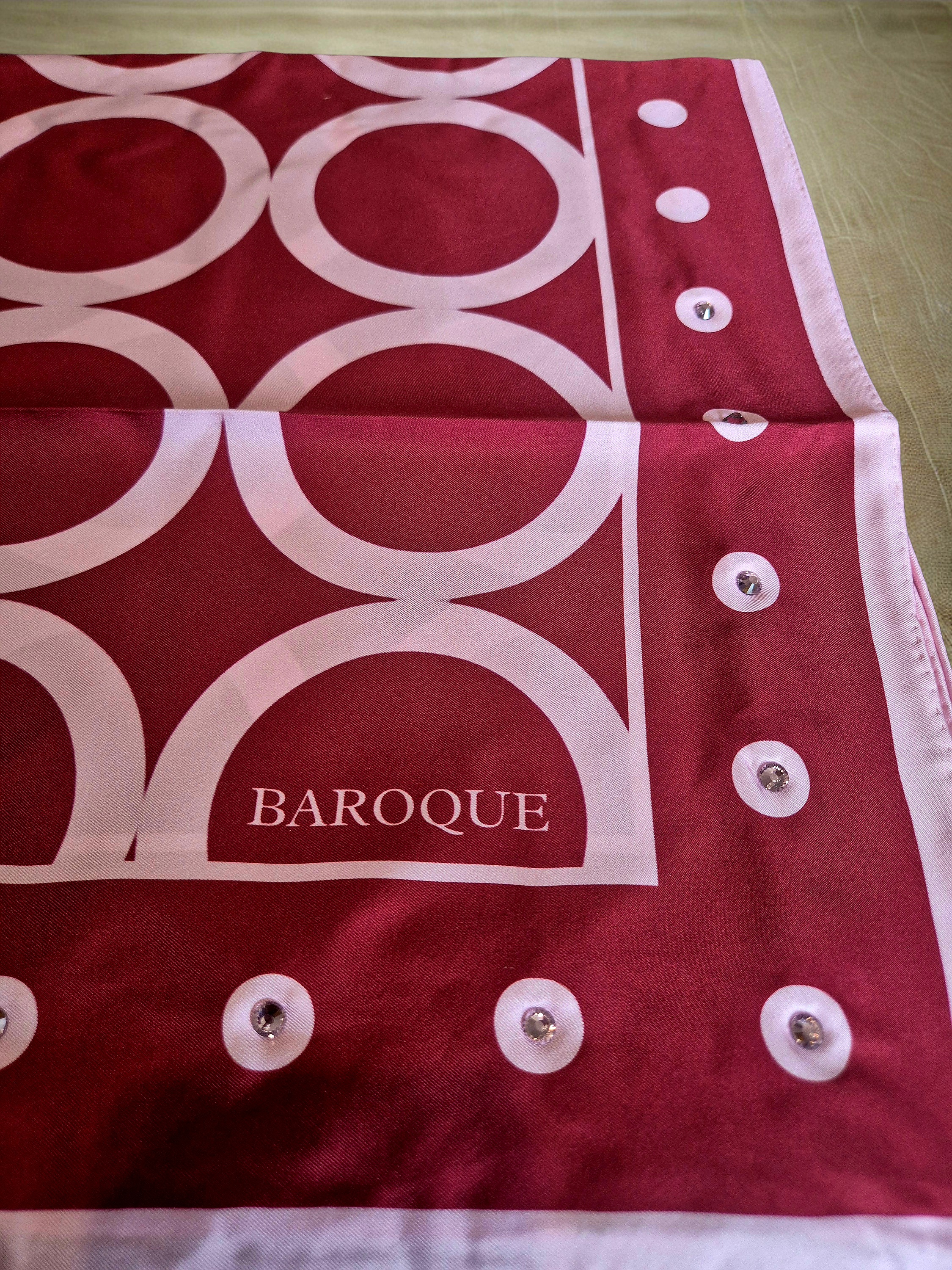 90x90 18mm twill with hand rolled edges & embellishments.