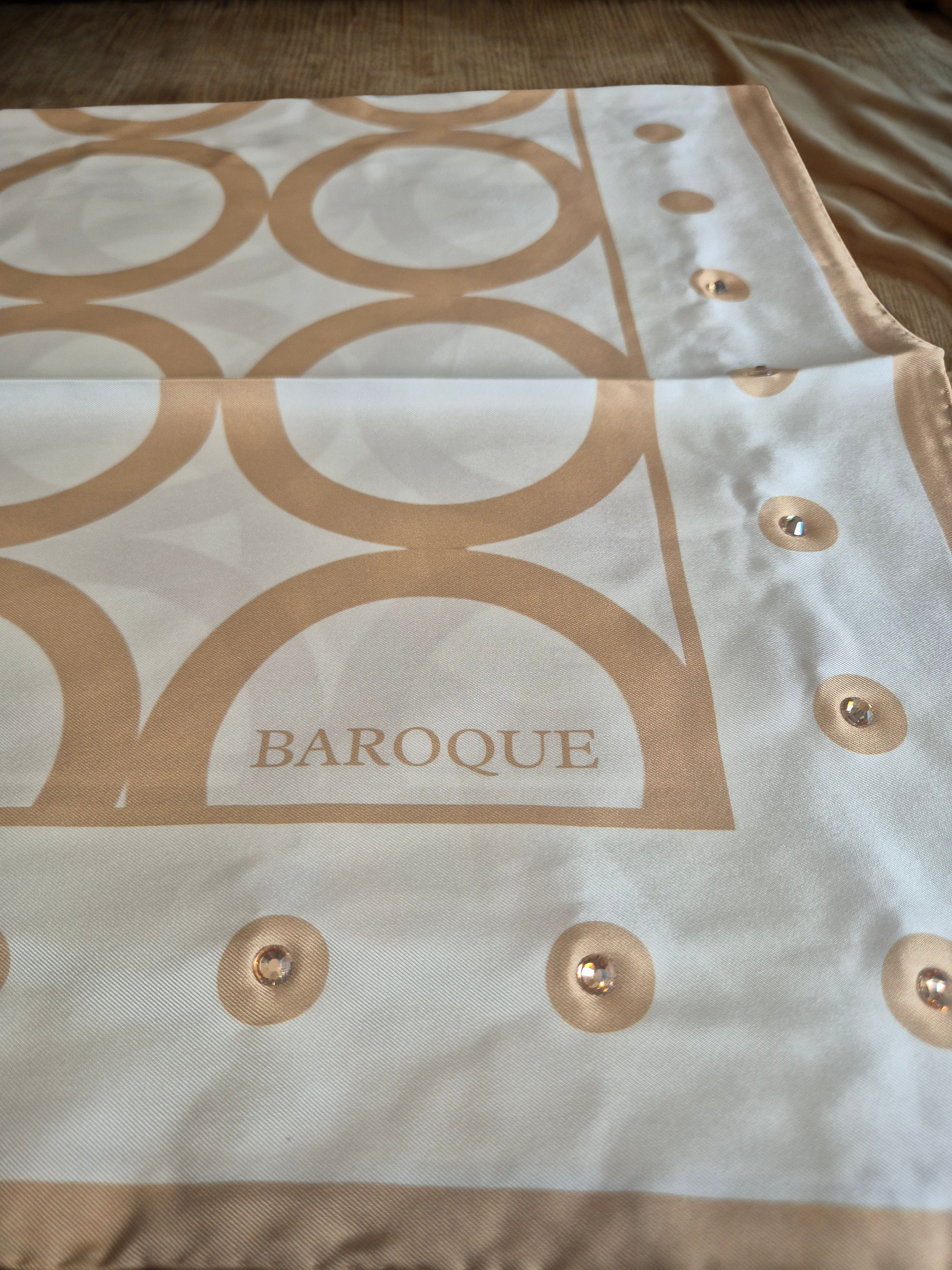 90x90 18mm twill with hand rolled edges & embellishments.