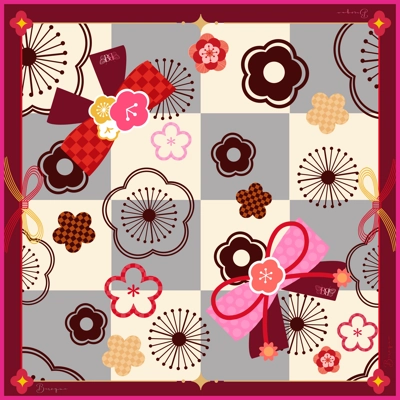 This scarf exudes an air of unmistakable luxury. The subtle checkerboard pattern in cream and grey offers a refined touch, while the striking burgundy and pink bows and border add a dramatic flair that is sure to captivate anyone who sees it.